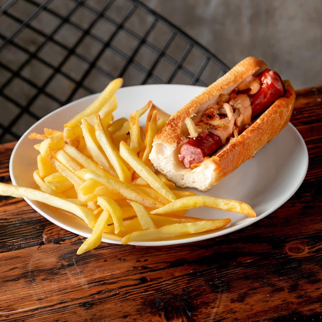 Full of flavour and topped with fried onions, and served with chips. Make sure you order a beer, and ENJOY!