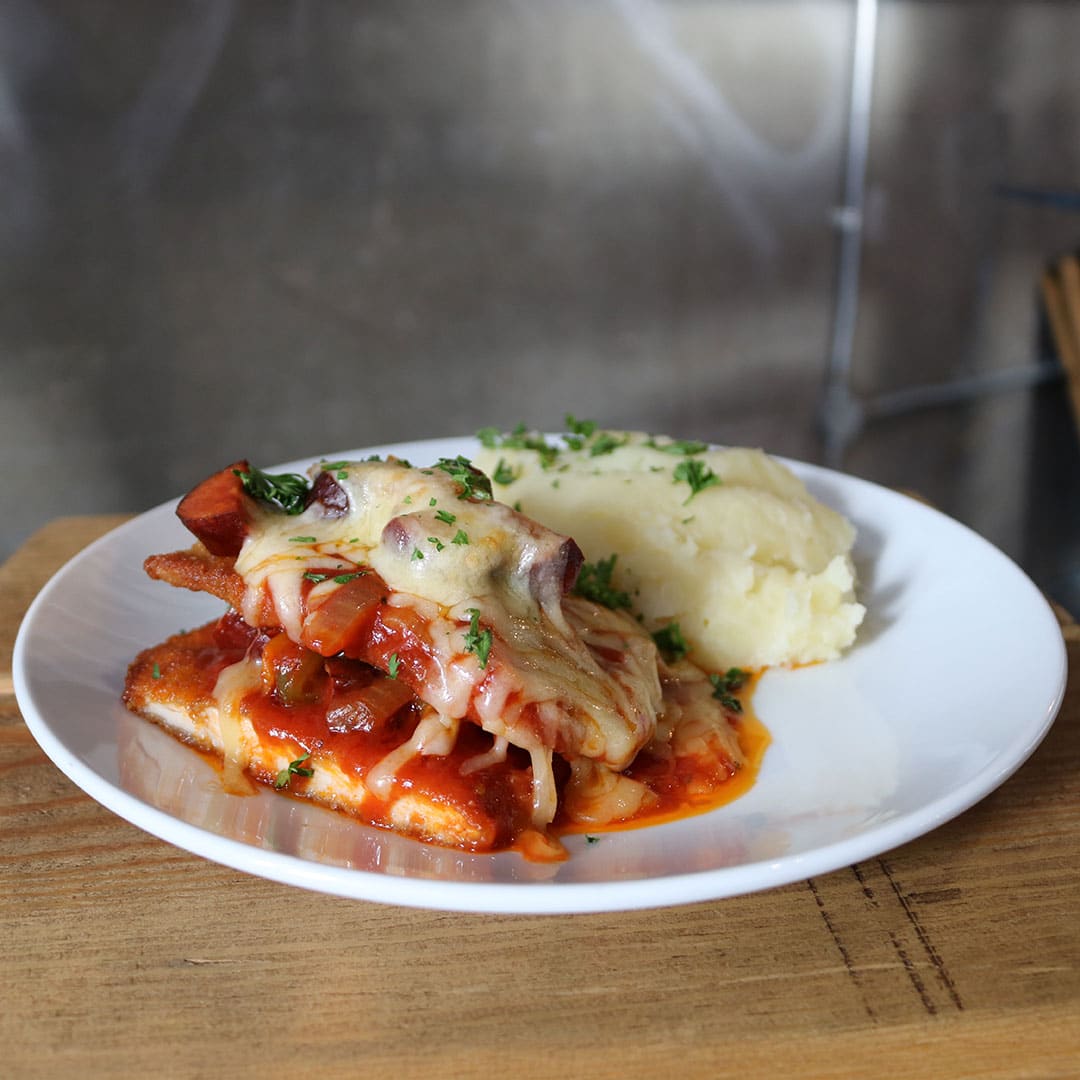 What’s better than a tenderised, breaded, shallow-fried pork loin? Try this pimped-up version with cheese and some kiełbasa leczo stew. Awesome!