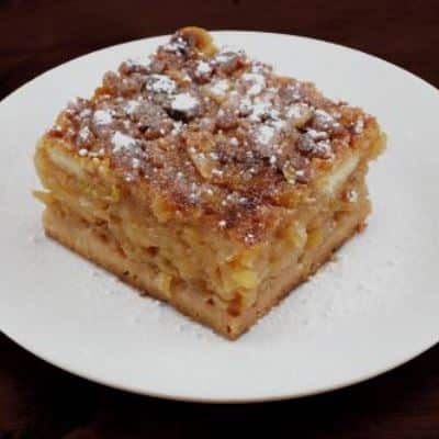 Popular polish apple cake with a thick layer of apples and a crumble crust.